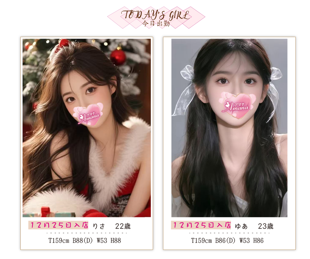 ★2025.12.25可愛い新入2人入店:ゆあ・りさ